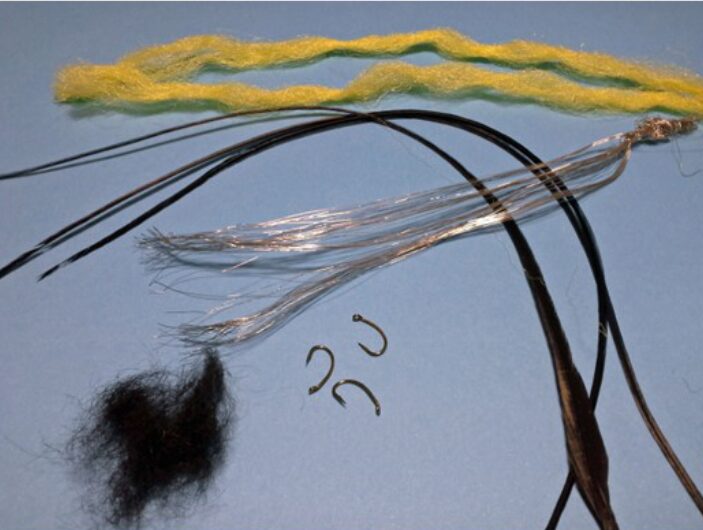 - Hackle: Black saddle hackle