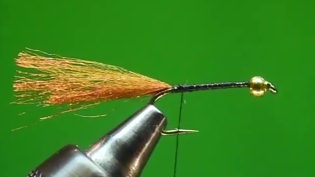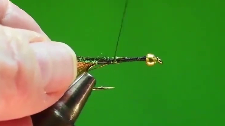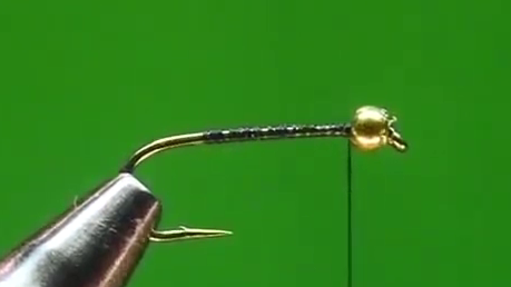 - Wrap the herl to the bend in the hook and back to the starting point.