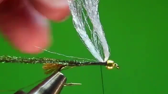 - Tie in the white Poly yarn wing behind the eye.