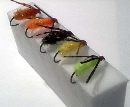 - Chenille: Saltwater colours chartreuse, orange, light rust, yellow & dark green.