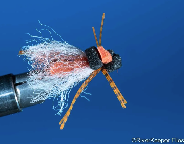 Developed by Charlie Card, a well-known guide on Utah’s Green River, Card’s Cicada is a simple but very effective pattern. The beauty of this fly, like all cicada patterns, is that it floats well aiding visibility, has some movement, and from underneath has a nice buggy profile, all key factors for trout.