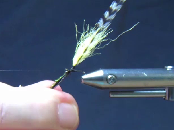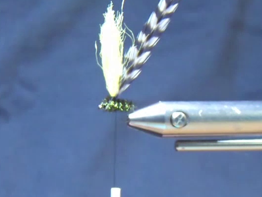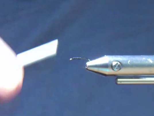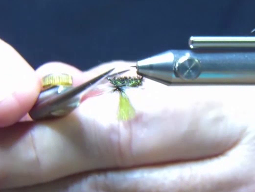- Tie off the herl, half hitch to secure, move the thread to the middle.