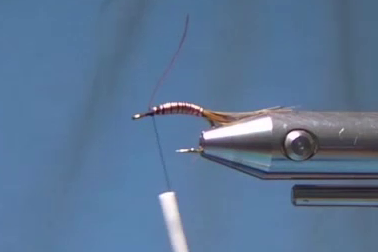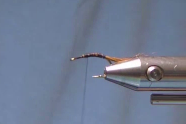 - Leave your thread hanging to keep the herl fibres together as you wrap.