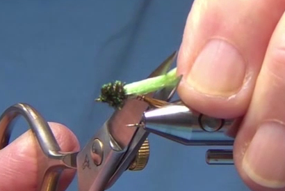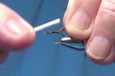 - Select three or four peacock herl fibres, tie them in and make a thorax.
