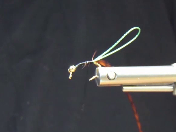 - Wrap red thread behind the eyes and three-turn whip finish.