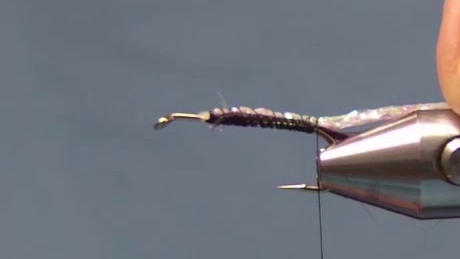 - Rib with Gold Wire: Palmer the gold wire from the tail to the eye, securing it along the way, while ensuring the dorsal stripe stays on top.