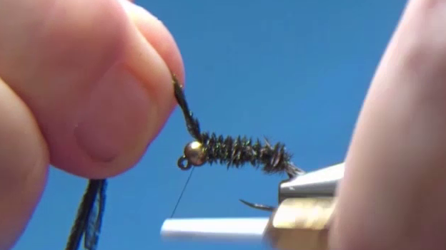 - Let the bobbin’s weight help maintain tension on the herl strands.