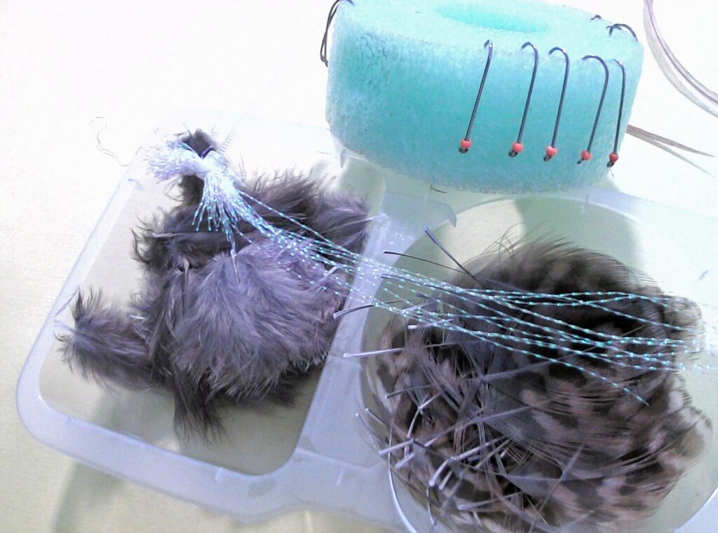 Tie three strands of Krystal Flash on each side of the tail. Trim so they extend slightly past the tail tips.