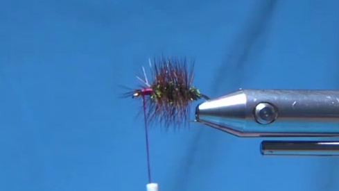 - Wrap the hackle back and forward. Tie it off.