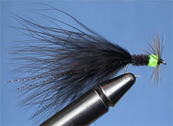 Tadpoles are tied in a variety of colours, from olive, orange and white to this black and green combination (which really stands out in coloured and clear water).