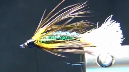 - Collar: White American hen hackle, Black laced white dyed golden olive