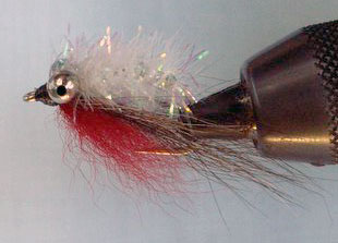 The secret is the fur over the wing as this gives the fly action even when it’s not moving. It can be tied in many colours – white and red, black/purple, black/red, olive/green.