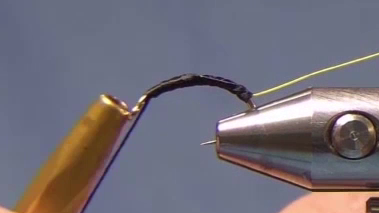 - Tie in the chartreuse Ultra Wire on the near side of the hook.