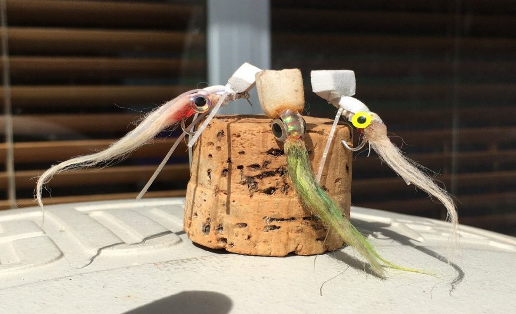Another version uses long shank hooks. These versions have tempted flathead to come off the bottom to take them. I have made some gurglers with big fish eyes and rubber legs to imitate mullet mooching on the surface (see photo).