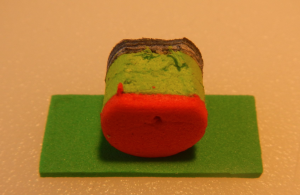 - Cut 1mm thick foam, to be used as the hood – 2 mm is OK. The hood should extend about 2mm past the eye end of the head. This is the blooping end.