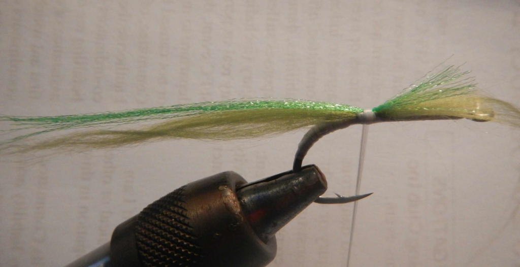 - Tie in tail of polar fibre, about the length of the hook around the bend.