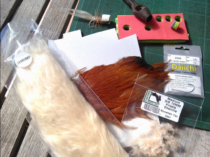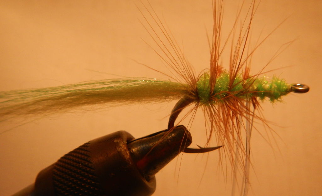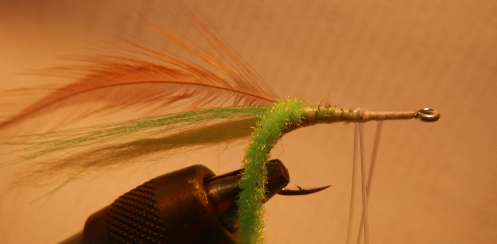- Chenille, Small Antron Chenille in Chartreuse and then suitable hackle long enough to imitate legs.