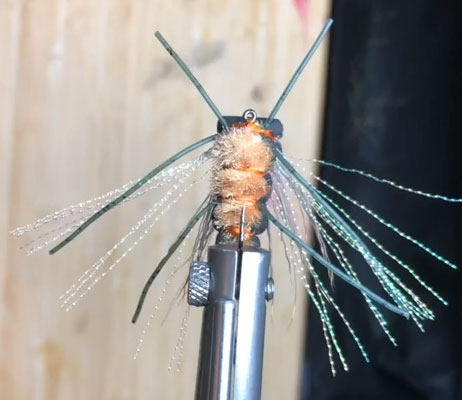 There are a few challenges in designing this fly, the main one is how to get a cicada where the wings splay outwards from the body in the water. This is the best solution; it seems to cast well, lands the right way up, floats okay, creates a realistic wing profile in the water and it seems to really get the bass going.