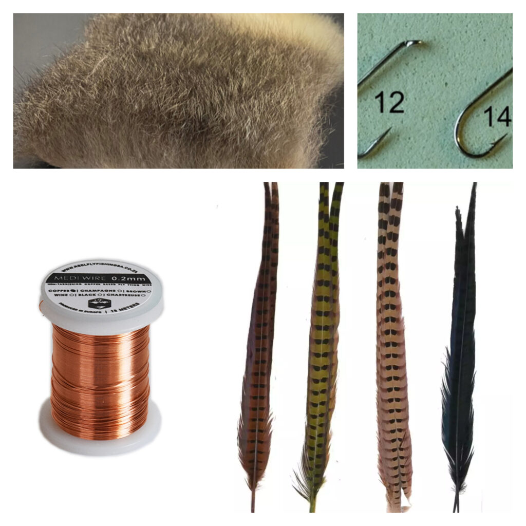 Wrap the pheasant tail fibres forward along the hook shank toward the 1/3 mark of the hook. This forms the abdomen of the fly. Once you reach the 1/3 point, secure the fibres with your thread and trim off the excess. - Reverse Wrap the Copper Wire