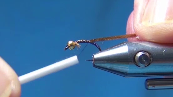 - Clip off the excess Zelon to form the tail to about half a hook gap in length.