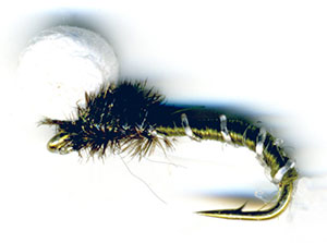 This makes it a good fly for the beginner to fly fishing to use, and also means you don’t have to resort to using an indicator. Under the water, the contrasting black and white ribbing create a midge-like impression with the squirrel dubbing implying emerging legs.