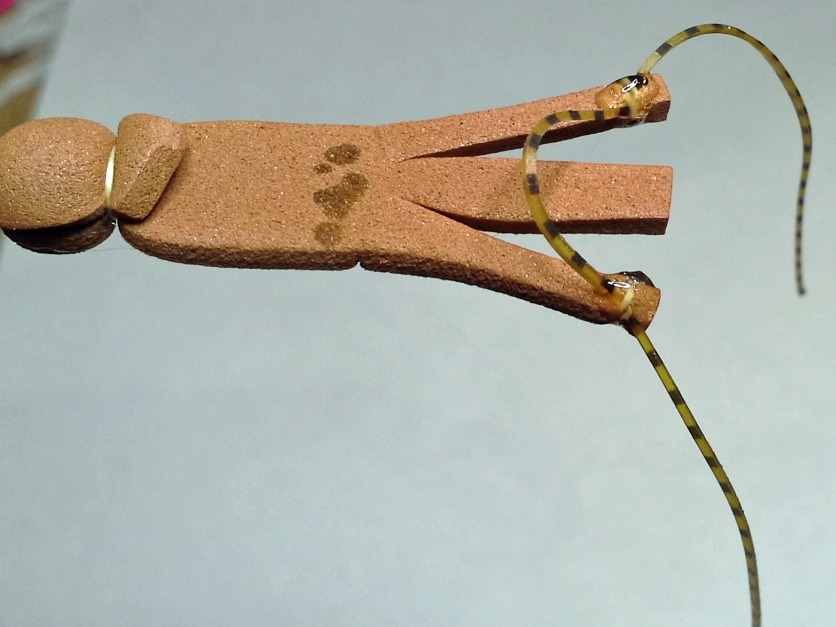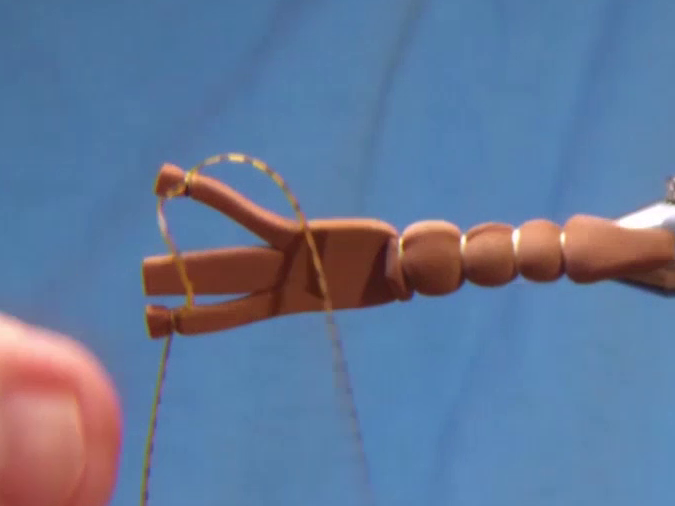 - Move the thread back to the last segment, fold the foam back and tie in to measure the length of the head. Use a texta pen to mark head.