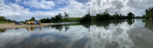 The DPI research boat and crew arrived first with a second unit arriving soon after with the fish in an aerated tank holding 11,300 fish.